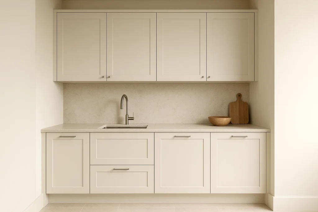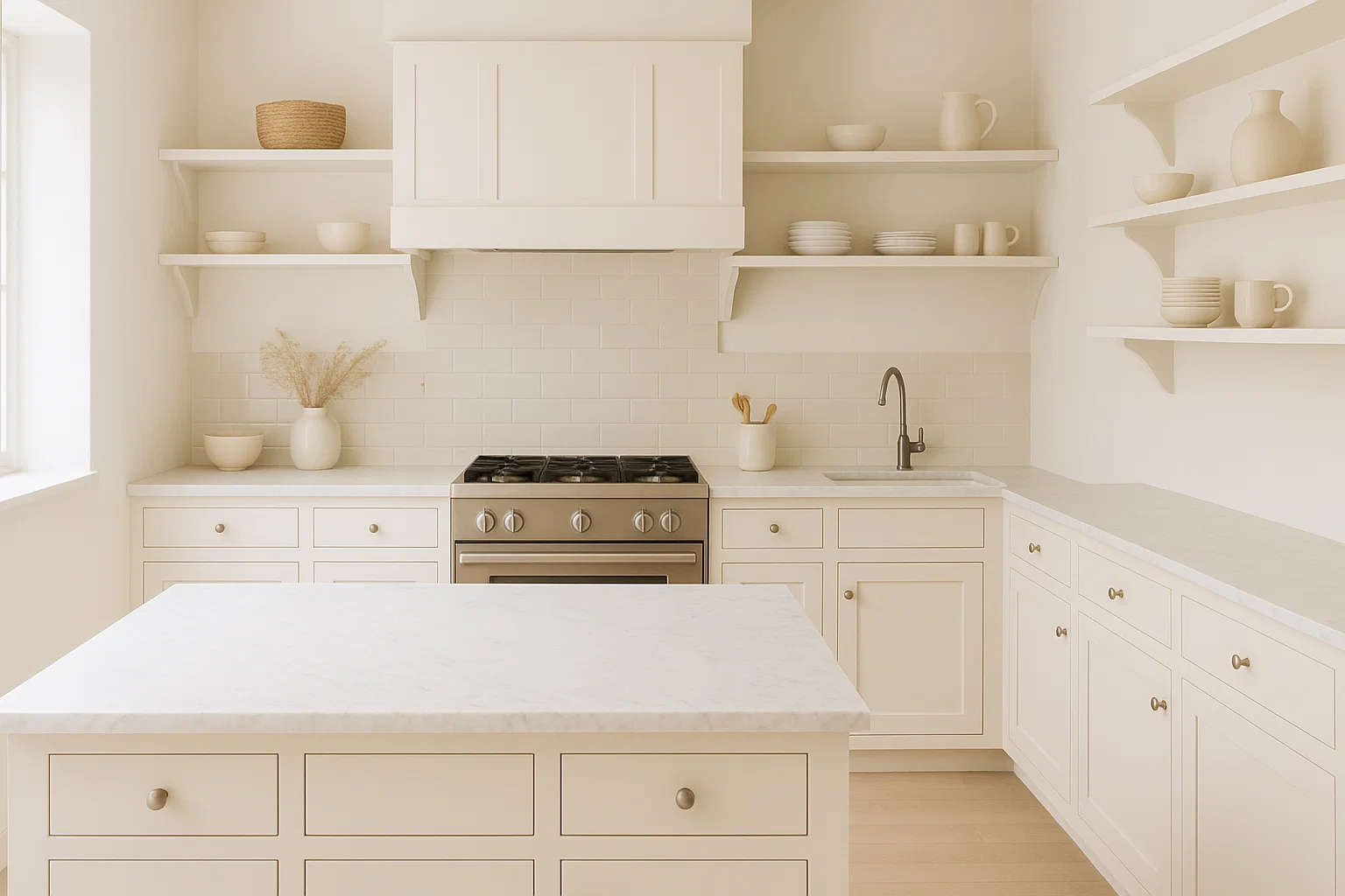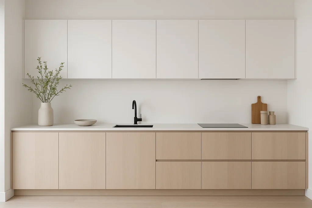 Yalnızca duvarlar değil, mutfak dolapları ve raflarda da açık renk tonları tercih etmek, mekanın daha geniş görünmesini sağlar. Beyaz, krem, açık gri ve pastel tonları, ışığı yansıtarak alanın daha ferah olmasına yardımcı olur. Açık renkler, mutfak eşyalarının daha düzenli görünmesini sağlayarak karışıklığı engeller.