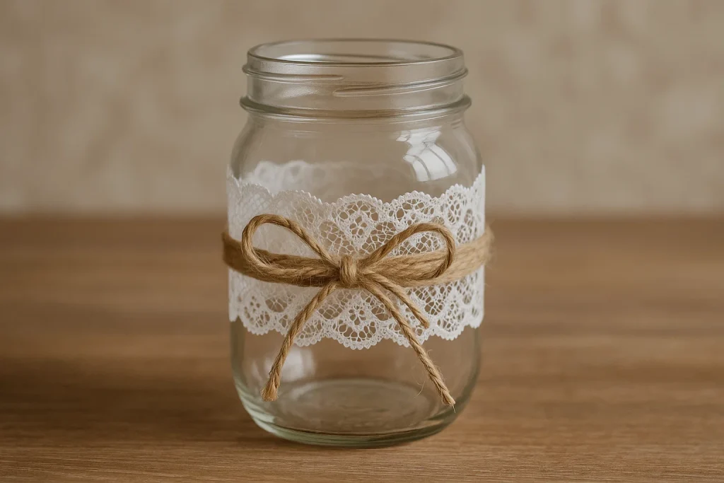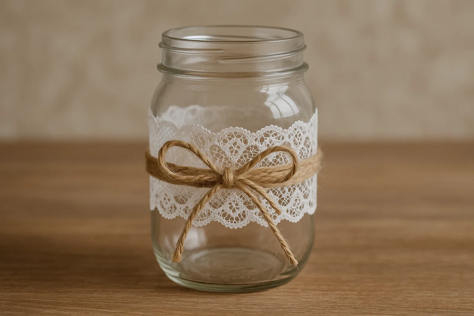 Kavanozlara zarif bir dokunuş eklemek için dantel, kumaş veya jüt ip kullanabilirsiniz. Dantel kumaş, kavanozun etrafına sarılarak romantik bir hava katacaktır. Kumaşı ya da dantel şeridi kavanozun etrafına sarmak için yapıştırıcı kullanabilirsiniz. Ayrıca, jüt ip ile de rustik bir hava yaratabilirsiniz.