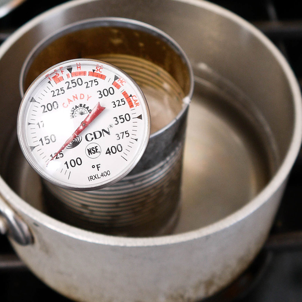 1. Derin bir tencere içerisine kaynar su koyalım. Tenceremizi ocağa yerleştirelim. İçerisine metal bir kap koyup parafini ekleyelim. Parafini bunun içerisinde eriyemeye bırakalım. Renk katmak istiyorsanız içerisine pastel boya da ilave edebilirsiniz.