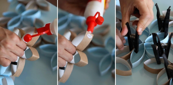 4. Boya kuruduktan sonra sıra çiçekleri birleştirere bir zincir oluşturmaya geliyor. Yine tutkal yardımı ile çiçekleri dilediğiniz gibi birleştirebilirsiniz.