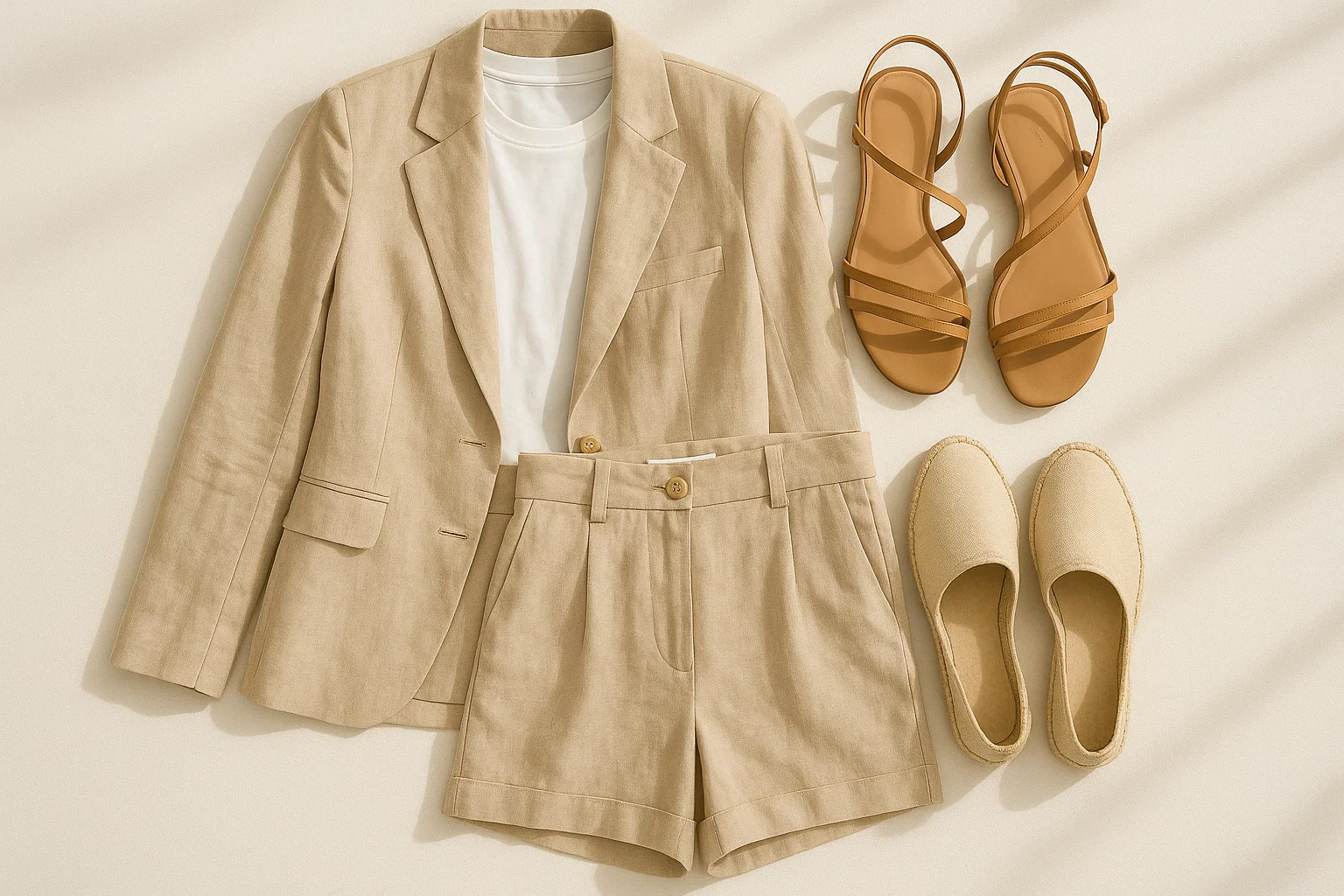 Keten, yazın vazgeçilmez kumaşlarından biridir. Hem hafif hem de nefes alabilen yapısıyla keten takımlar bu yaz oldukça popüler. Keten şort ve ceket kombinleri, hem gündüz hem de akşam saatlerinde rahatlıkla kullanılabilecek şık bir tercih. Üzerine sade bir tişört veya bluz ekleyerek günlük stilinizi tamamlayabilirsiniz.