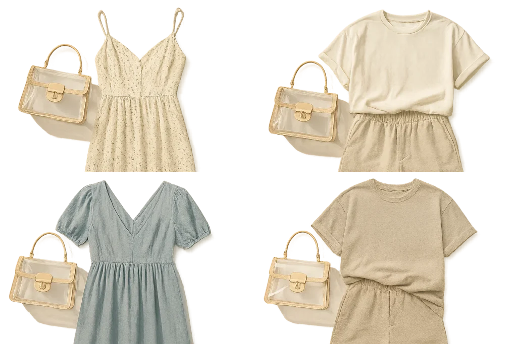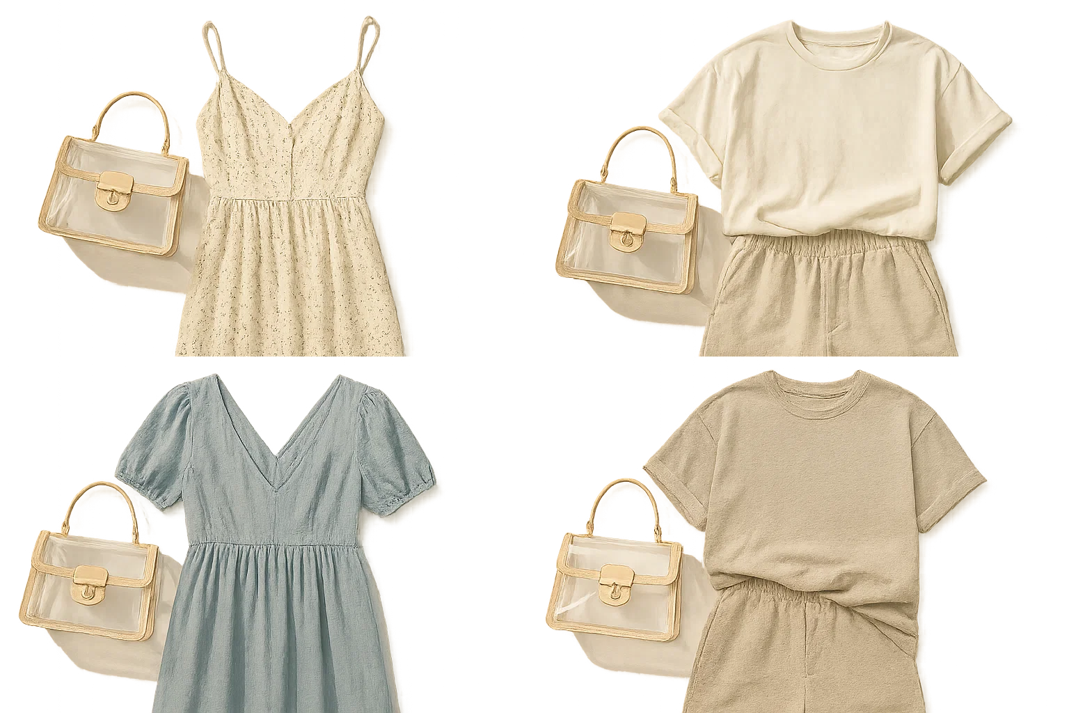 - Şeffaf çantayı şık bir yaz elbisesiyle kombinleyin.