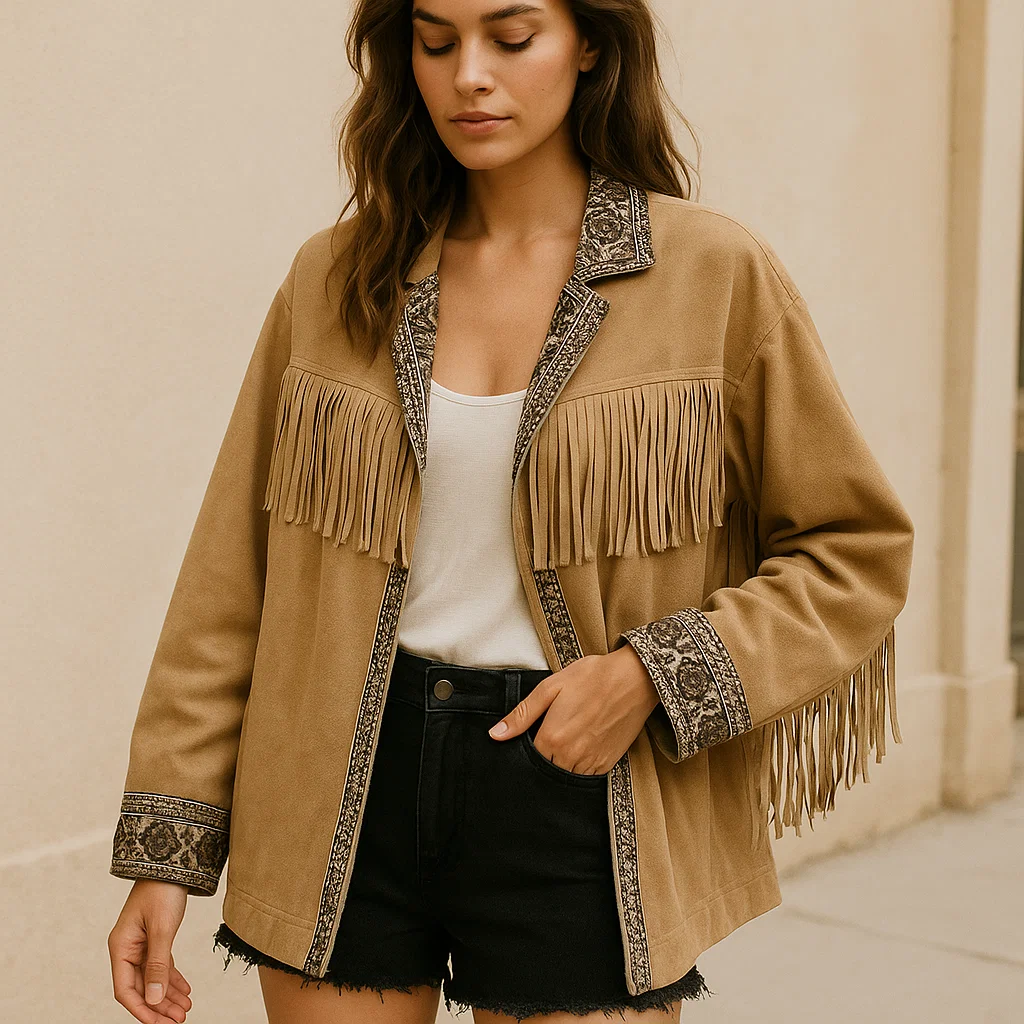 Püsküllü ve bohem tarzda tasarlanan ceketler, nostaljik bir hava katıyor. Bu ceketler, özellikle yaz akşamlarında rahat ve şık bir seçenek sunuyor. Bohem tarzda tasarlanmış oversize ceketler, sade ve şık bir kombinle mükemmel uyum sağlıyor.