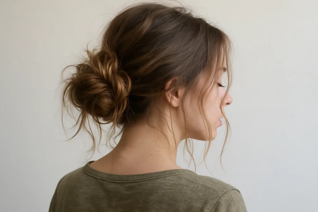 Doğal ve salaş bir görünüm mü arıyorsun? O zaman dağınık düşük topuz tam sana göre. Özellikle deniz sonrası ya da günlük kombinlerle harika uyum sağlar.